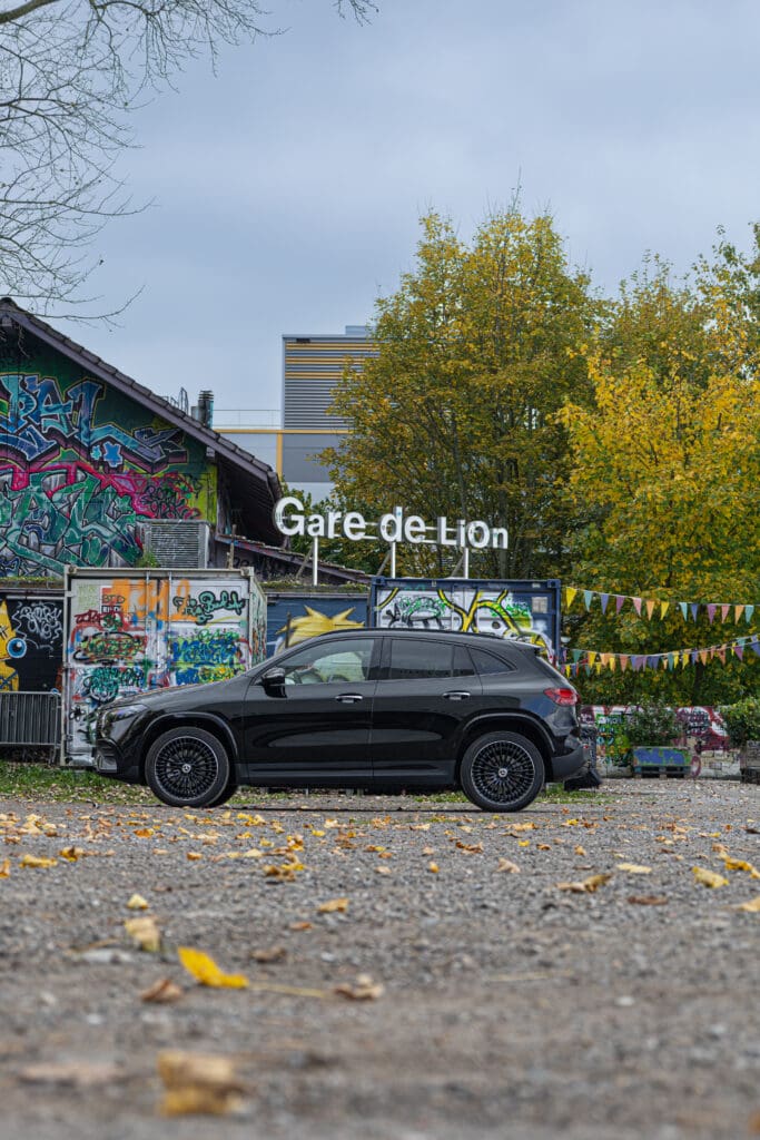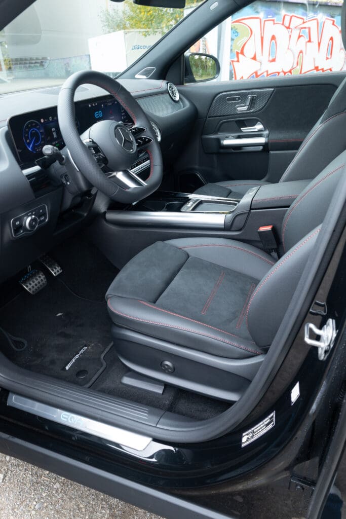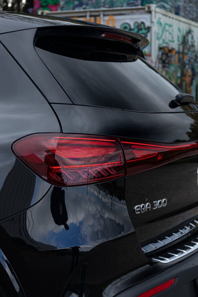 • Design & Präsenz:                                                                                                                                                                                                            Der EQA zeigt den Mercedes-Benz EQ-Look mit geschlossener Black-Panel-Front,